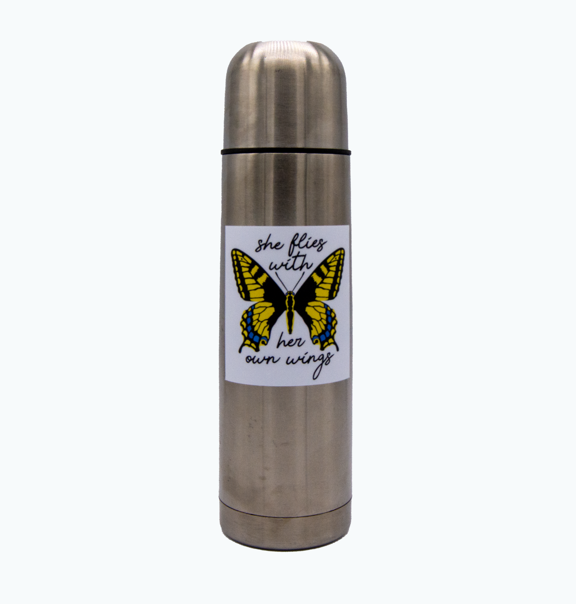 As a message of strength and independence, the words on our 3"x3", durable and weatherproof vinyl sticker are carried by an illustration of Oregon’s official state insect, the Oregon Swallowtail.